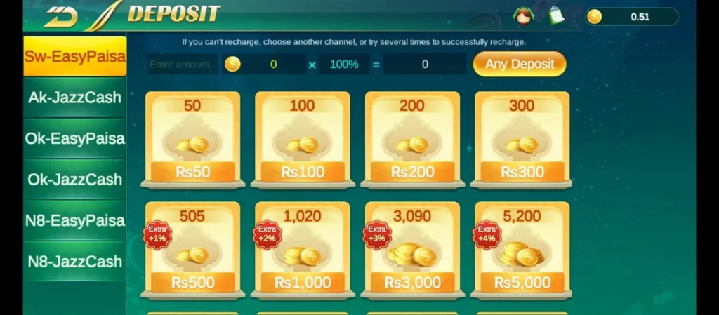 Players can easily deposit and withdraw their money through Easypaisa and Jazz Cash. It takes only a few seconds for money to reach your accounts.