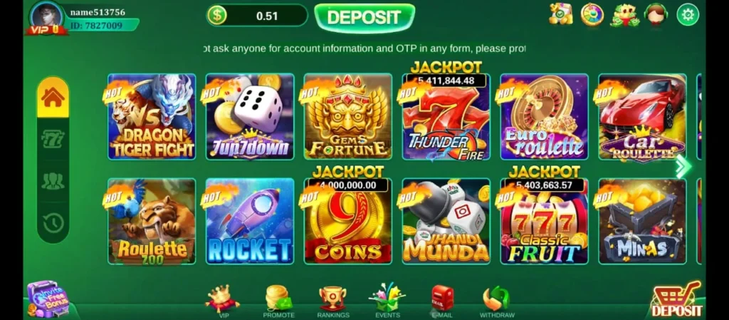 The game has a user-friendly interface that contains features like deposit, withdraw, VIP, customer support, and all the games of this app. You can easily find and use these features. You will get many free bonuses and attempts to win money. The deposit amount starts from 50 and the minimum withdrawal is 200. The game is safe and has no security issues. You can earn while being entertained.