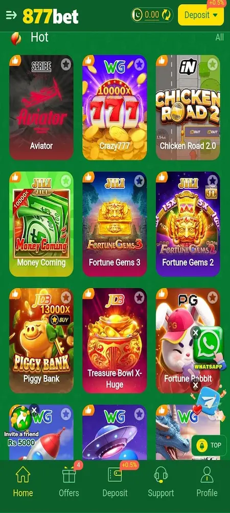 877 Game is an online gaming platform that offers multiple casino-style games, including slots, color prediction, card games, and sports betting. The app allows users to play games for entertainment and also earn money depending on their luck and strategy.