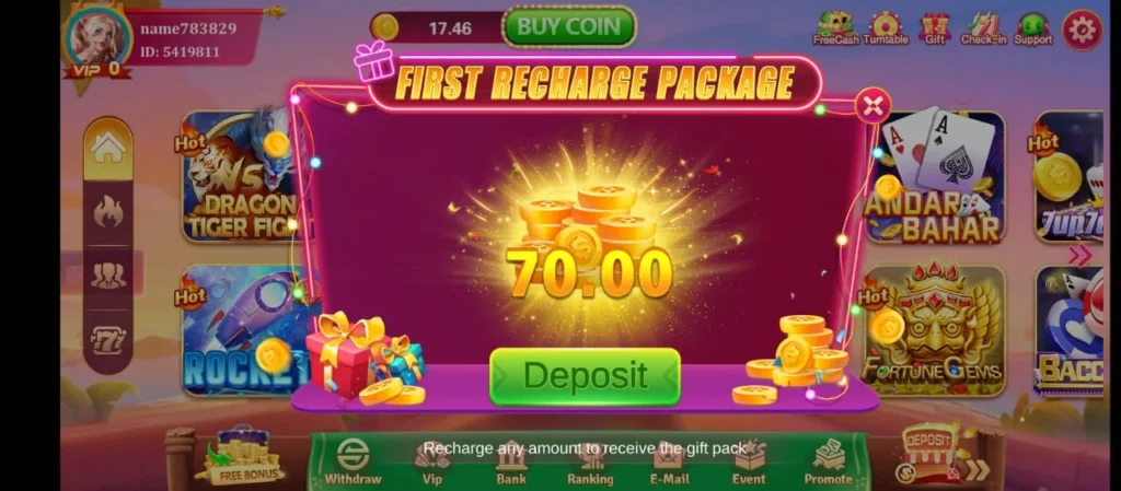 This is the best part of this game. Players can earn real money by depositing a small amount. Using the money, play games and win to multiply you money in few minutes. You will also get 100 rupees free bonus and more on deposit.
